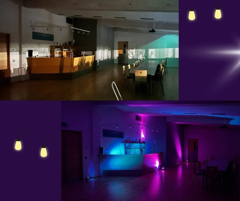 DMX stýring fyrir rými og stemningu, rólegt eða dýnamískt eftir því sem hentar.